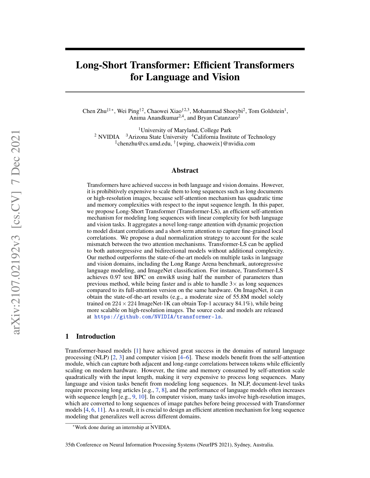 Chen Zhu, Wei Ping, Chaowei Xiao, Mohammad Shoeybi, Tom Goldstein, Anima Anandkumar, Bryan Catanzaro NeurIPS 2021